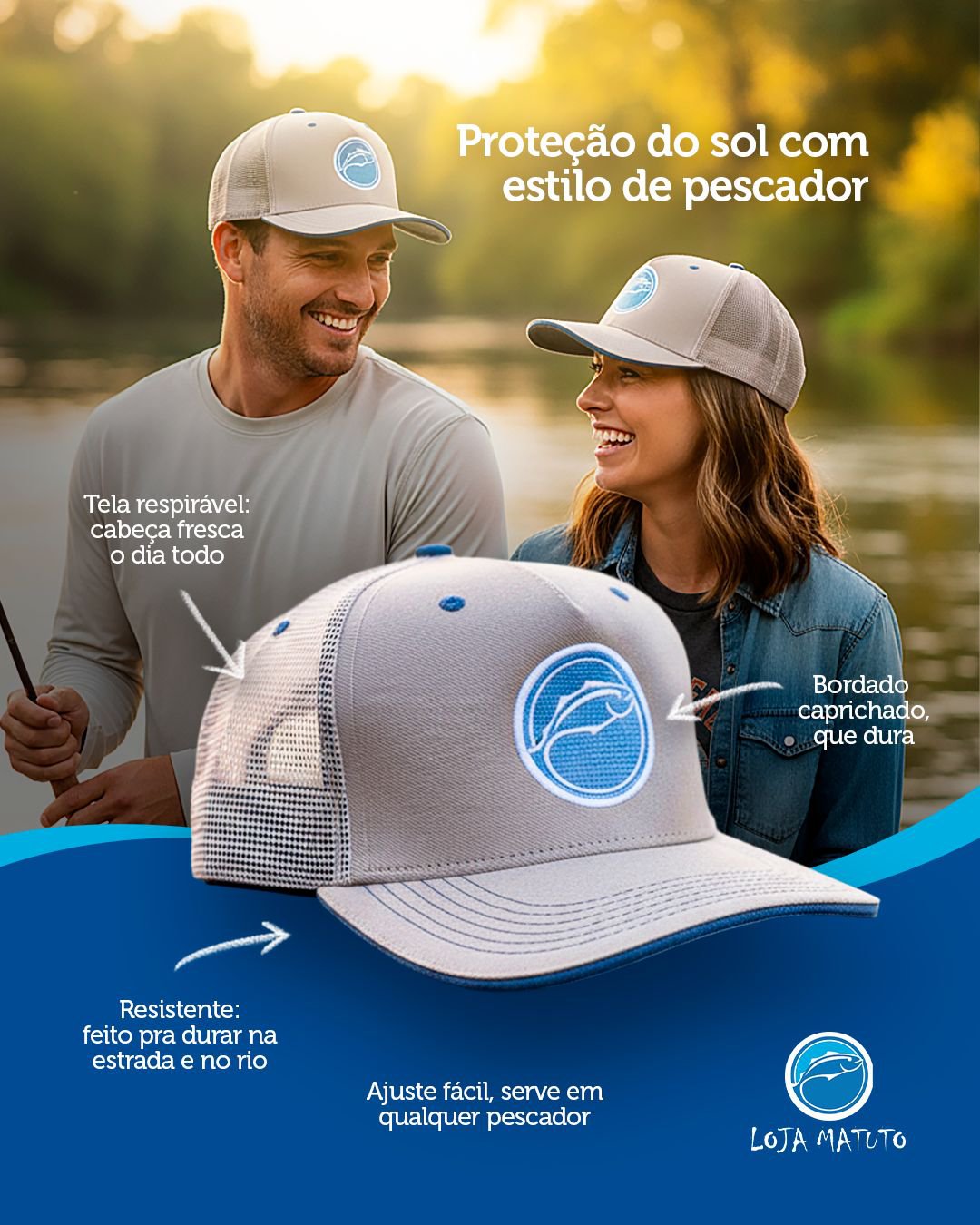 Com bordado de alta qualidade, ele oferece um visual sofisticado e marcante. A tela respirável garante maior conforto térmico, ideal para dias quentes ou para quem passa longas horas ao ar livre. O fechamento ajustável permite um encaixe perfeito em diferentes tamanhos de cabeça, proporcionando conforto sob medida.